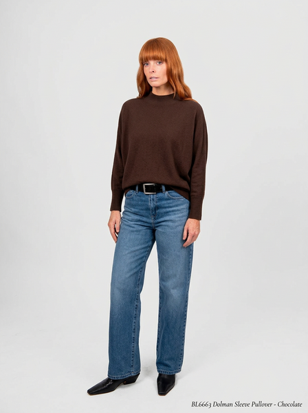 Dolman 3/4 Sleeve Pullover - Chocolate