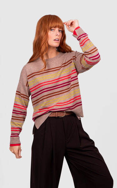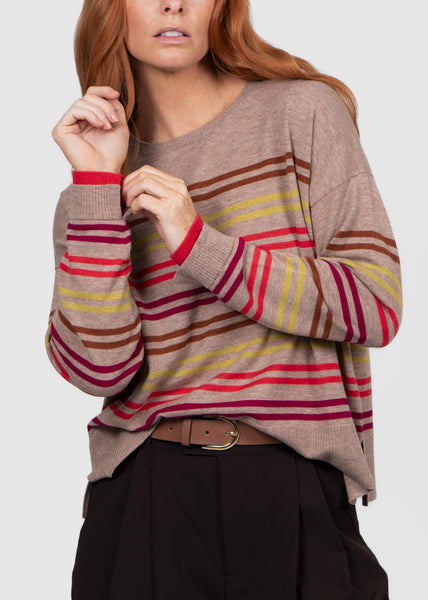 Multi Stripe Relaxed Pullover - Cobblestone