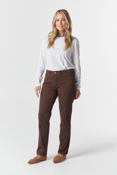 Our most-loved jean and a constant sell-out now available in Chocolate.