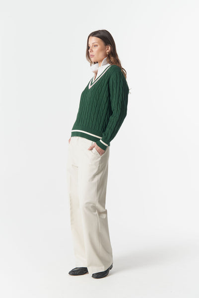 Chunky Cotton Deep V Knit - Lush Green