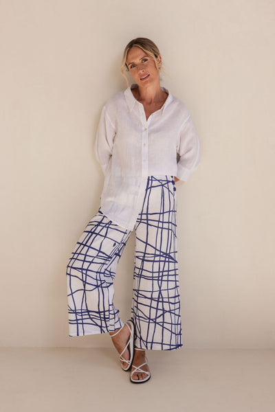 Linen/Viscose Short Sleeve Collared Shirt - timeless classic in cool white.