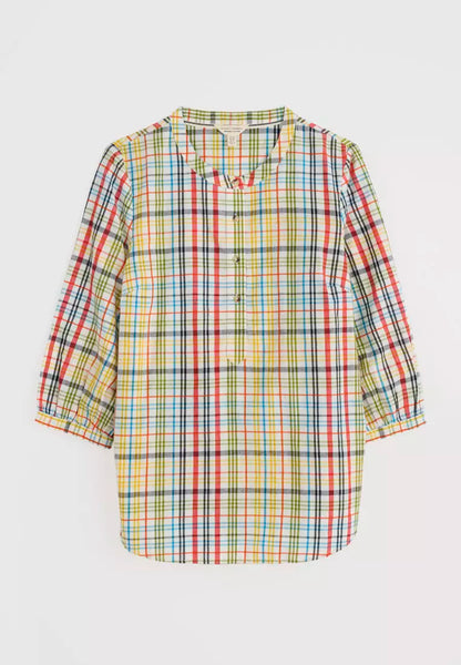 Our Rose Garden shirt is crafted from cool and breathable organic cotton, which has been yarn-dyed for rich, vibrant and lasting colour. It has a grandad collar and a four-button placket that finishes at the waist. Easy-fitting through the body and with a curved hem, you can tuck the shirt into your trousers or wear it loose for a relaxed look.