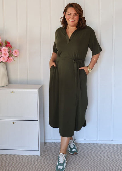 This dress features a v-neckline with a smart collar, elbow-length sleeves and a relaxed maxi silhouette. The rounded hem with side splits allows effortless movement, while the waist tie lets you adjust the fit for a feminine finish. Designed for everyday wear, holidays and summer getaways, it’s a piece you’ll return to season after season.