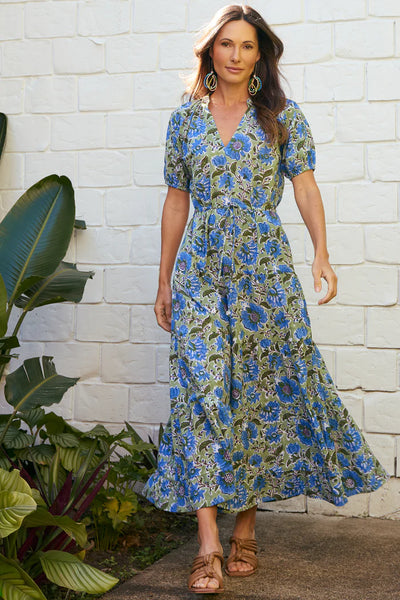 Say hello to effortless boho style with the Carter Maxi. Made from soft, breathable cotton and finished in the hand block print Forget Me Not, this dress is as versatile as it is comfortable. The relaxed fit can be cinched at the waist with the drawstring or worn loose for an easy, floaty look.